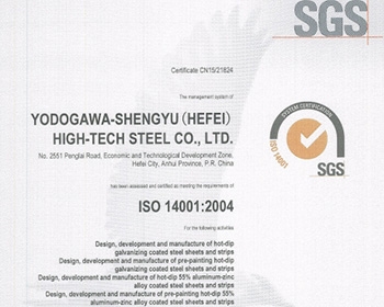 淀川盛馀(合肥)高科技鋼板有限公司已通過ISO14001:2004環(huán)境管理體系驗證,并于2015年12月24獲得證書。這標志我司環(huán)境管理體系正式獲得SGS專業(yè)驗證的認可。